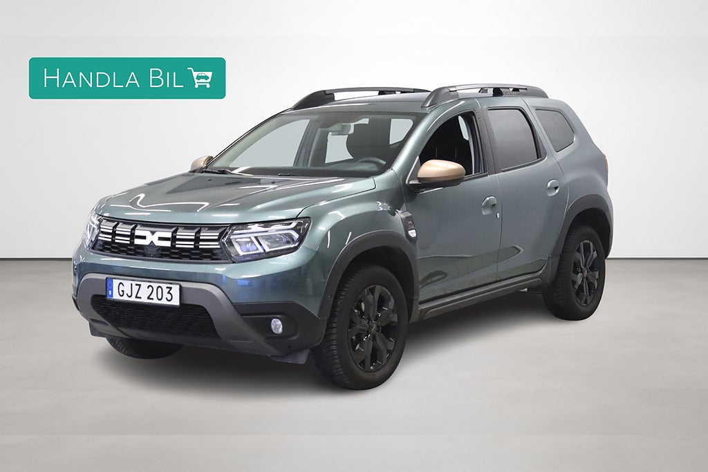 Redo för omgående leverans hos oss på Handla Bil Östersund finns nu denna Dacia Duster 1.3 TCe 4x4 Extreme! Här hittar du en SUV som ger maximal nytta för pengarna, en bil med robust design, fyrhjulsdrift och en pigg bensinmotor som gör den både rolig att köra och lätt att äga. Med 4×4-systemet får du trygg framkomlighet på både snöiga vintervägar, grus och leriga skogsvägar. Extreme-utrustningen gör Duster ännu mer attraktiv: bilen har en rik utrustningsnivå med moderna funktioner och smarta detaljer som skapar komfort och funktion i vardagen.